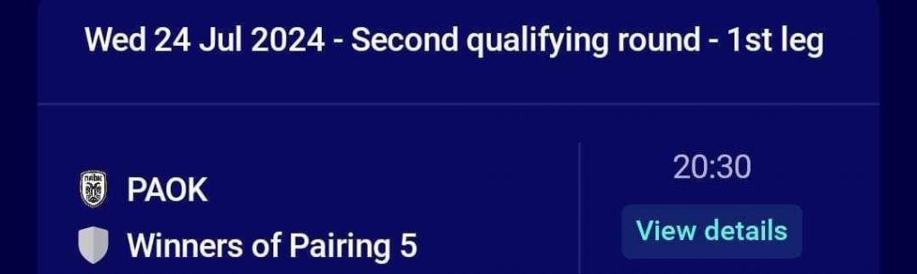Όπως ανακοίνωσε η UEFA, το ματς της Τούμπας είναι προγραμματισμένο για τις 24/7 (20:30), με τον Δικέφαλο να περιμένει τον αντίπαλο του που θα προκύψει από τον πρώτο προκριματικό γύρο του Champions League για να μάθει αν ο επαναληπτικός μία εβδομάδα αργότερα λάβει χώρα στην Βοσνία ή την Αλβανία.