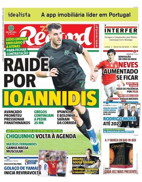 Στροφή της Σπόρτινγκ Λισαβόνας για τον Φώτη Ιωαννίδη, που “επιστρέφει” στην μάχη της απόκτησής του, σύμφωνα με τα πορτογαλικά ΜΜΕ. Πρωτοσέλιδο σε A Bola και Record…