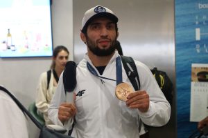 Στην Ελλάδα και το αεροδρόμιο “Ελ. Βενιζέλος” επέστρεψε την Δευτέρα (12/8) ο Νταουρέν Κουρουγκλίεβ φορώντας στον λαιμό του το χάλκινο μετάλλιο που κατέκτησε στους Ολυμπιακούς Αγώνες στο Παρίσι.