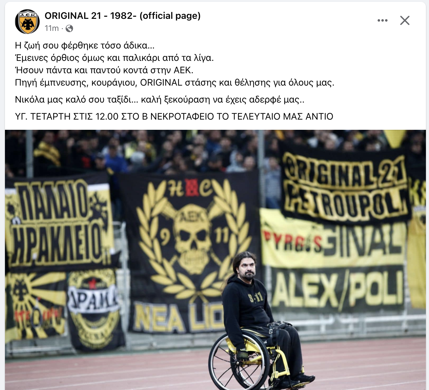 Διαβάστε τη δημοσίευση της μεγαλύτερης οργανωμένης μερίδας οπαδών της ΑΕΚ: