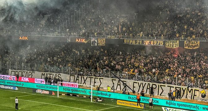Στηρίζουμε τη μεγαλύτερη ομάδα του κόσμου με ό,τι αυτό συνεπάγεται! Στηρίζουμε την ομάδα και τους παίχτες που φοράνε την φανέλα, στηρίζουμε τον ΜΑTIAS ALMEYDA με τον οποίον πήραμε νταμπλ – μια ιστορία που ξεκίνησε με μπουκάλια και γιουχα στη Ριζούπολη… ΑΕΚ !