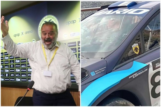 Μάλιστα ο ιδιοκτήτης της ΑΕΚ αποθεώθηκε από τους φίλους της ομάδας που βρέθηκαν στην Πορταριά με σημαία της ΑΕΚ να ντύνει το καπό του Ford Fiesta με τα 650 άλογα.