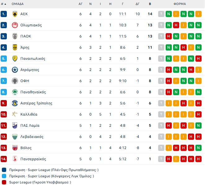Η βαθμολογία της Super League: