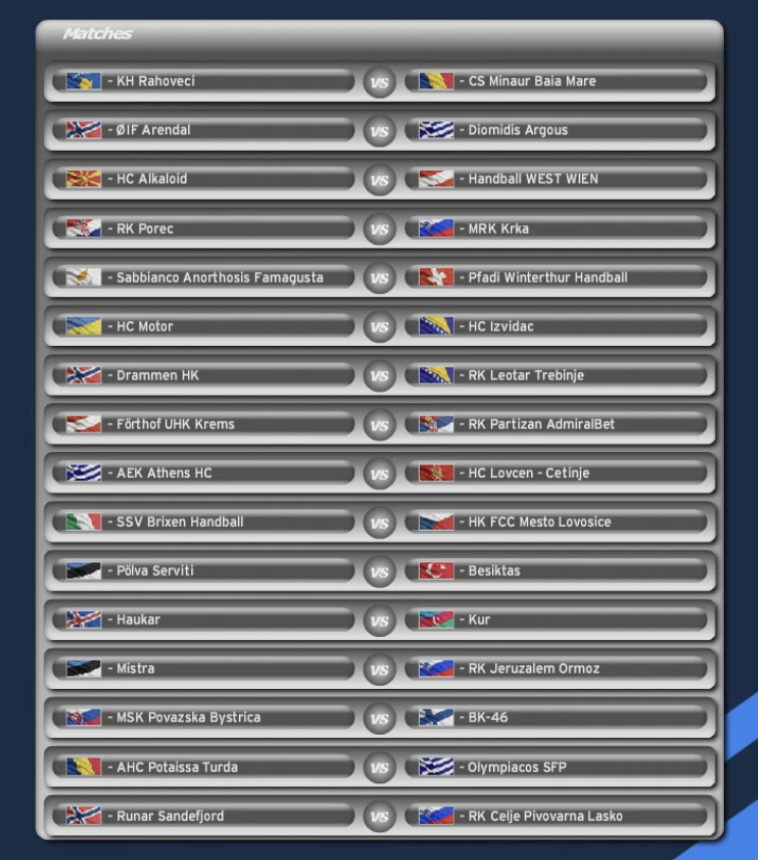 Αναλυτικά όλα τα ζευγάρια των «32» του EHF European Cup: