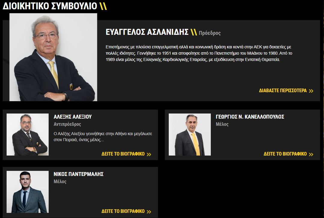 Η σύνθεση του Δ.Σ. όπως φαίνεται στο site της ΠΑΕ ΑΕΚ: