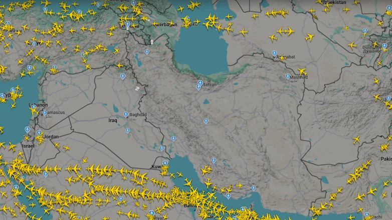 Όπως φαίνεται πεντακάθαρα στην εικόνα που ακολουθεί δεν πετάει ούτε ένα αεροσκάφος πάνω από τον εναέριο χώρο της Μέσης Ανατολής και πιο συγκεκριμένα του Ιράν και του Ιράκ.