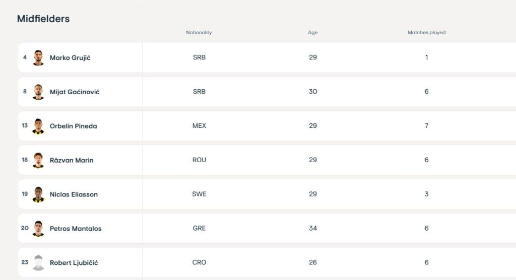 Όπως μπορείτε να δείτε και παρακάτω, ο Κροάτης χαφ εμφανίζεται κανονικά στο κιτρινόμαυρο ρόστερ που έχει δηλωθεί, στην επίσημη σελίδα του Conference League.
