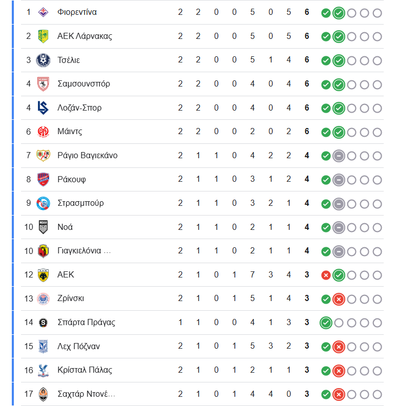 Δείτε αναλυτικά την βαθμολογία μετά τα αποτελέσματα της Πέμπτης (23/10).