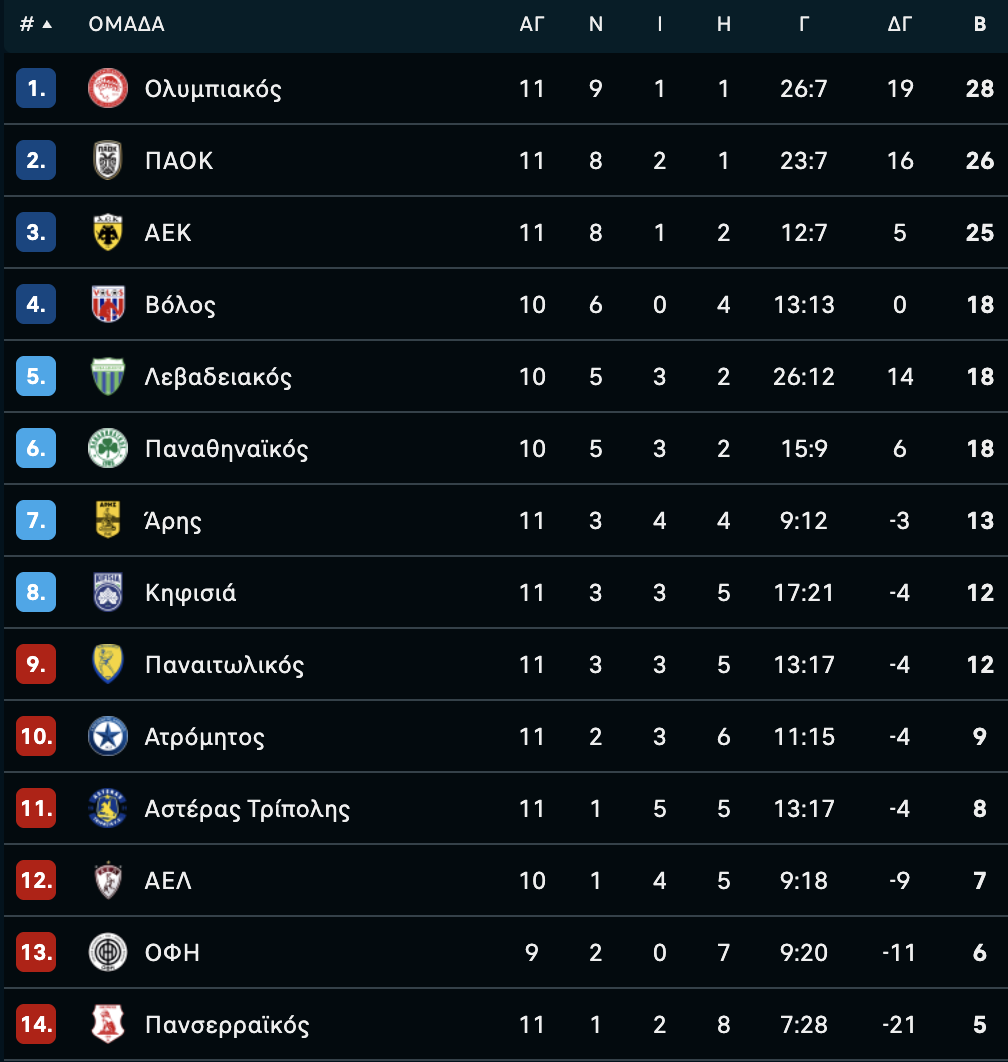 Το πρόγραμμα και τα αποτελέσματα της 11ης αγωνιστικής