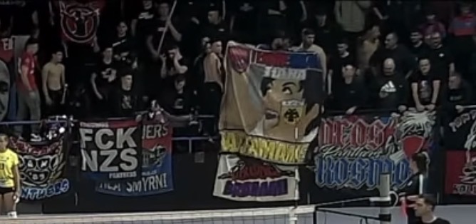 Όπως μπορείτε να δείτε και στη χαρακτηριστική φωτογραφία παρακάτω, υψώθηκε ένα κατάπτυστο και σεξιστικό πανό το οποίο μάλιστα η ίδια η αρχηγός της ομάδας του, ζήτησε να κατέβει!