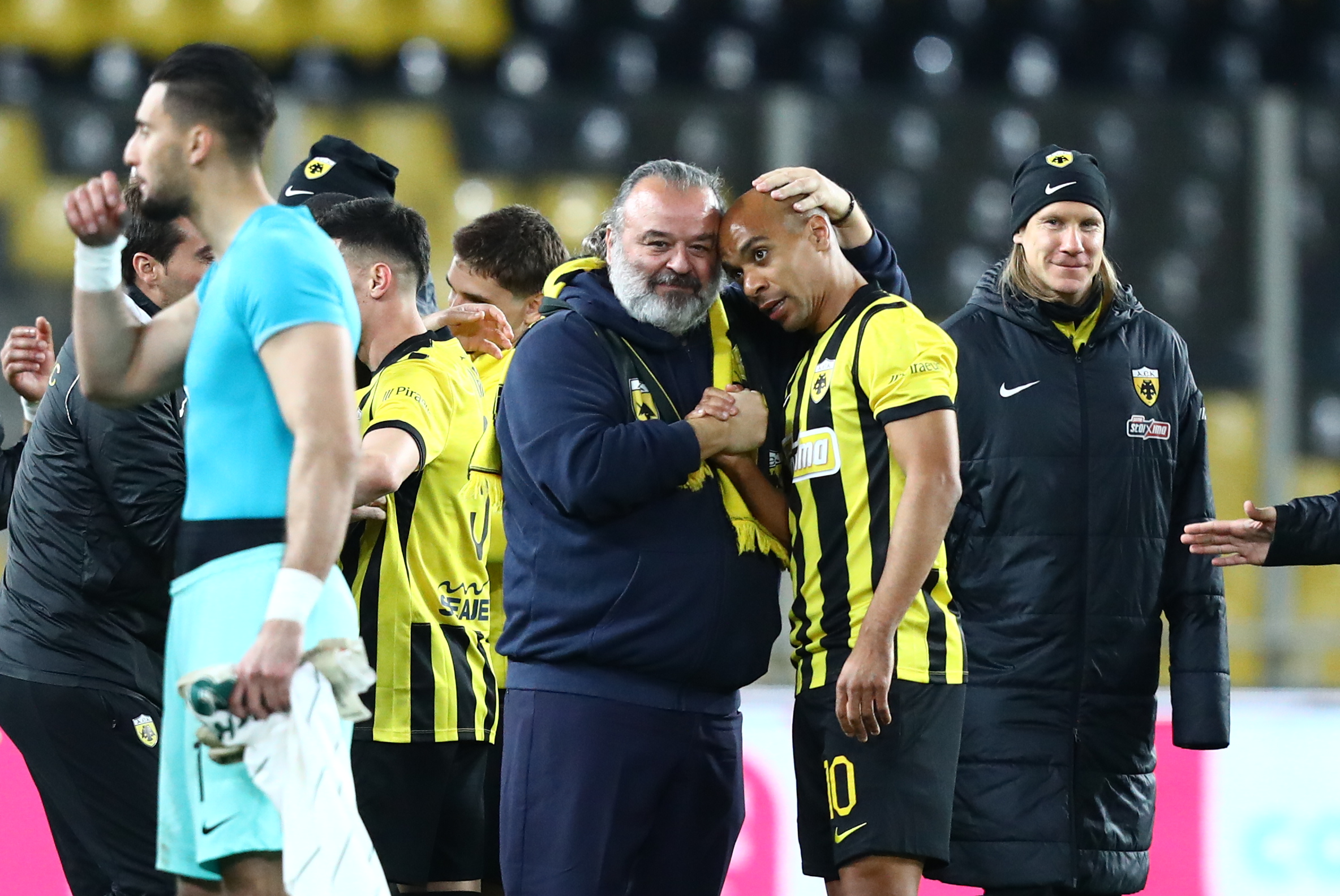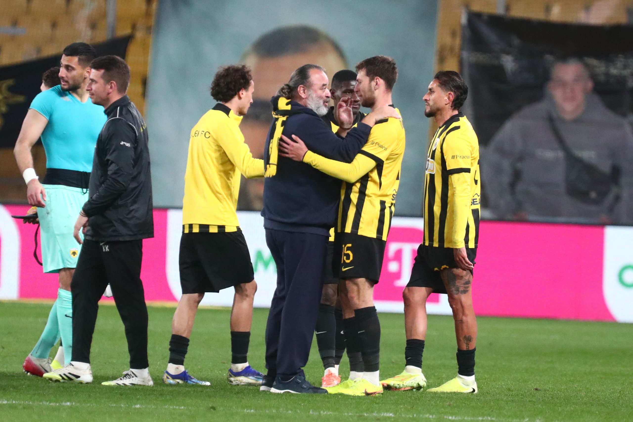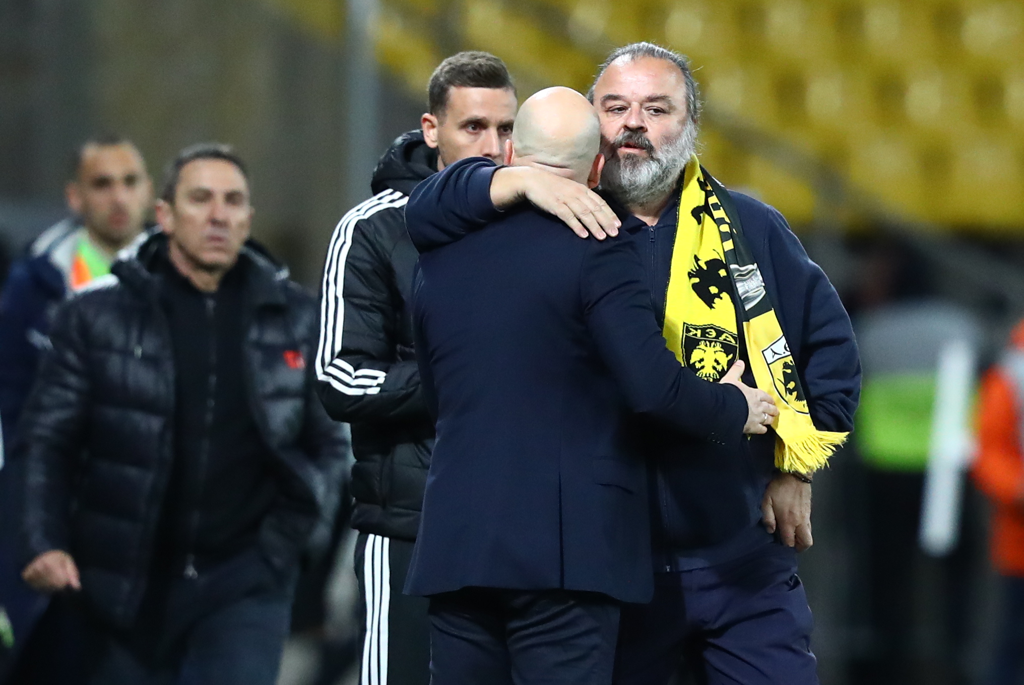 Αμέσως μετά το τελευταίο σφύριγμα, ο Μάριος Ηλιόπουλος κατέβηκε στον αγωνιστικό χώρο εμφανώς ικανοποιημένος και αγκάλιασε έναν έναν παίκτες και προπονητή, δίνοντας τα συγχαρητήρια του στην ομάδα.