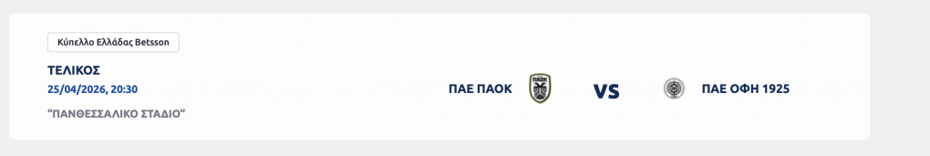 ΠΑΟΚ και ΟΦΗ θα μονομαχήσουν στο Πανθεσσαλικό Στάδιο στις 25 Απριλίου με φόντο την κατάκτηση του κυπέλλου betsson.