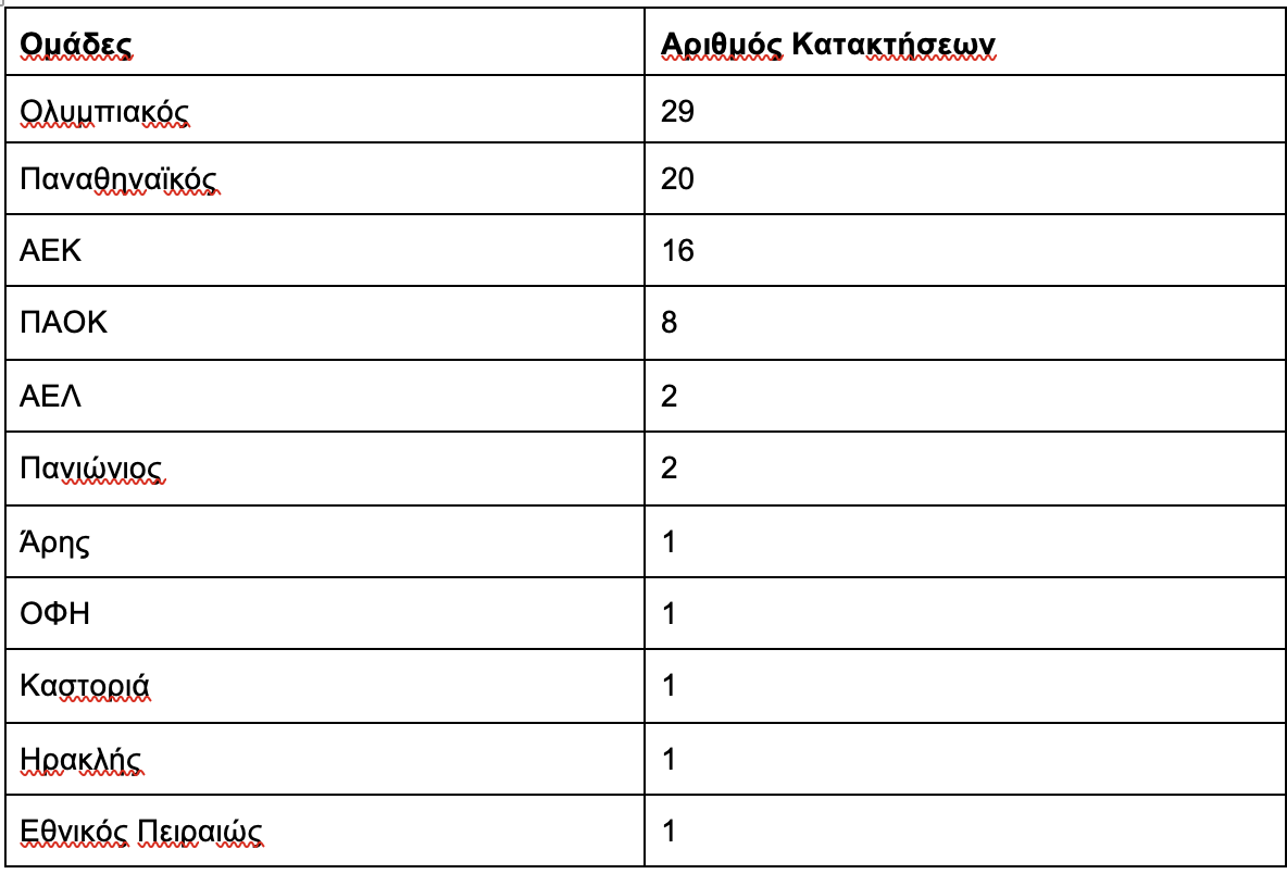 Ποιές ομάδες έχουν κατακτήσει το κύπελλο Ελλάδας?